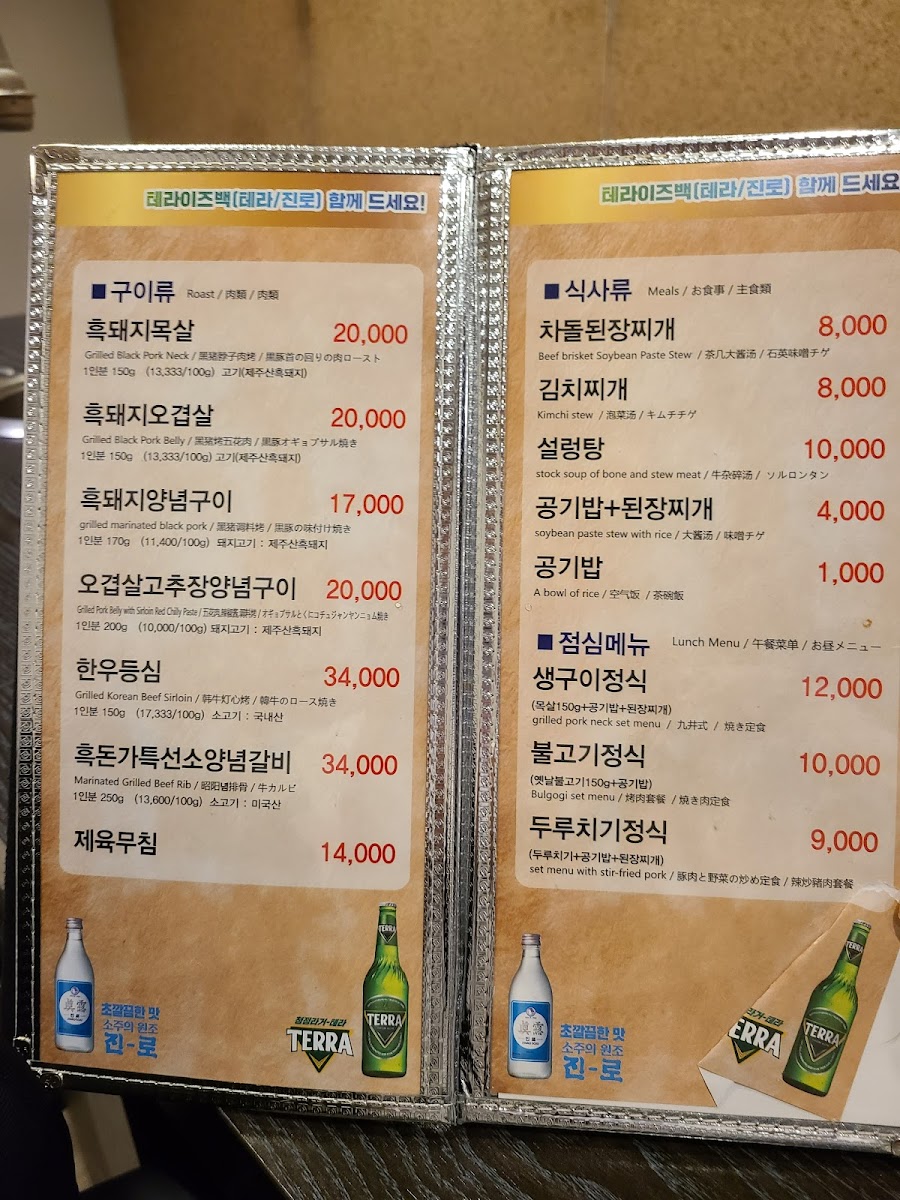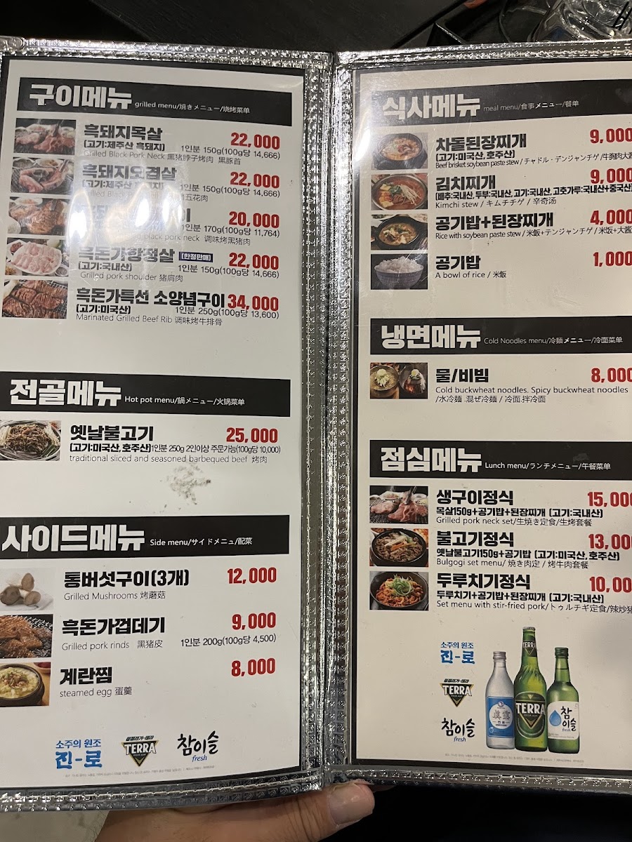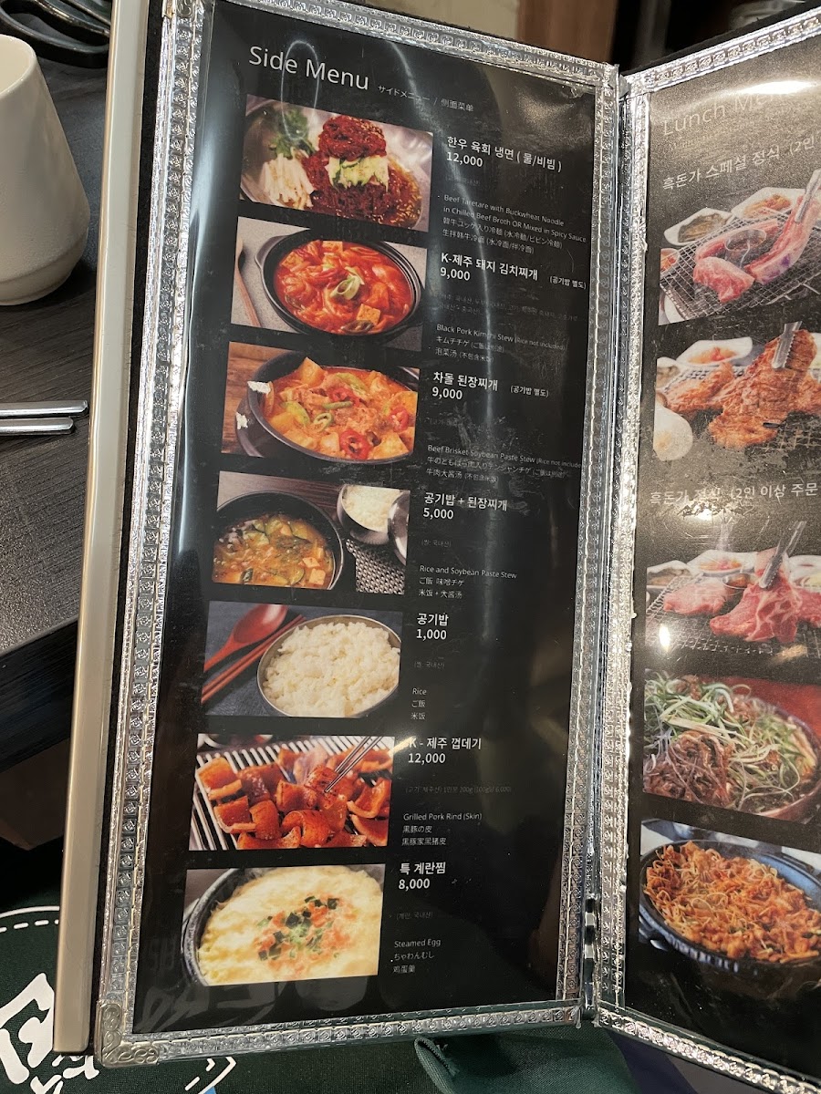 The menu at Heukdonga Myeongdong offers a delightful and authentic Korean dining experience, featuring a wide variety of dishes that highlight the rich flavors of Korean cuisine. One of the restaurant's main attractions is their Korean BBQ, which is a must-try for meat lovers, offering tender cuts of meat that are grilled to perfection. For a special treat, the 제주흑돼지 (Jeju Black Pork) stands out with its distinct flavor, known for being both juicy and rich in taste.